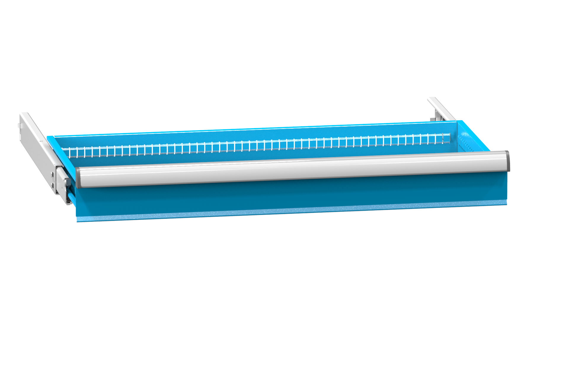 Pokaži večZasnova izvleka predala zagotavlja 100-odstotni izvlek predala, kar omogoča dostop do celotne površine predala. Vodila izvlečnega mehanizma so v stranskih panelih omare nastavljiva v korakih po 25 mm. Gladko in tiho delovanje, največja obremenitev 200 kg.
